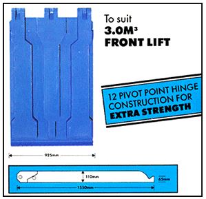 The original BR Plastics 3.0m Industrial Bin Lid is manufactured from super tough polyethylene that provides easy handling, strength and durability. The unique double skin ribbed design ensures maximum strength with controlled water run off gutters.