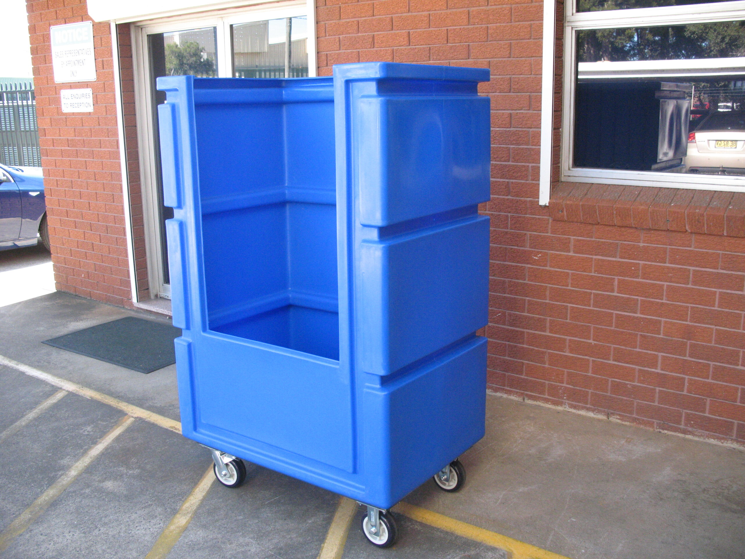 The BR Plastics Linen Tallboy is ideal for commercial laundries, hotels, motels, hospital and the healthcare industry. The Linen Tallboy is manufactured is super tough polyethylene mounted on a plated steel frame with heavy duty 150mm wheels. Two wheels pivot and brake and two wheels are fixed to give maximum manoeuvrability.